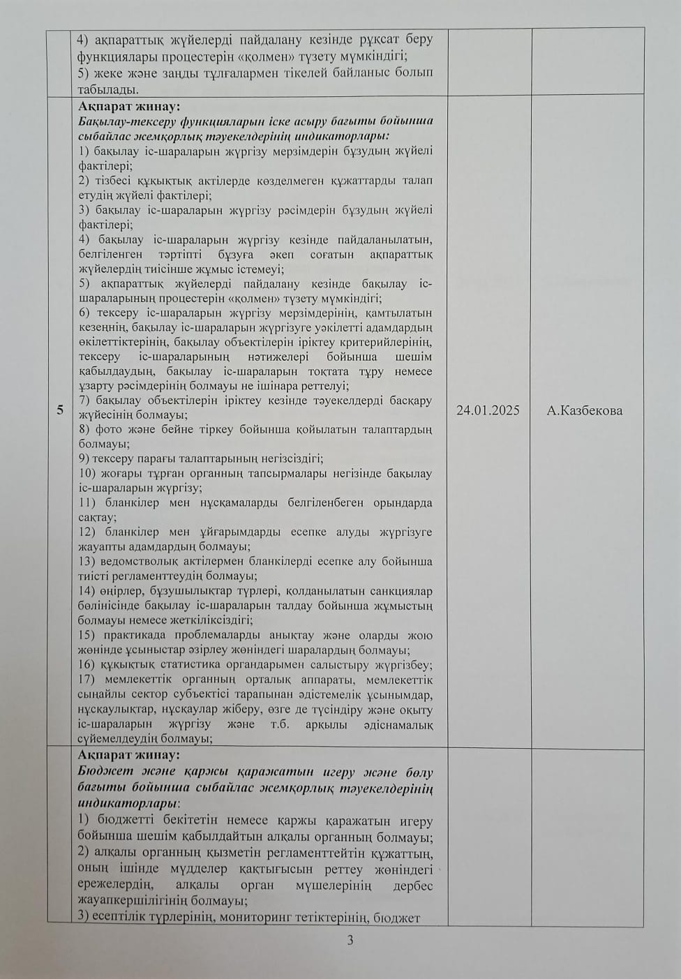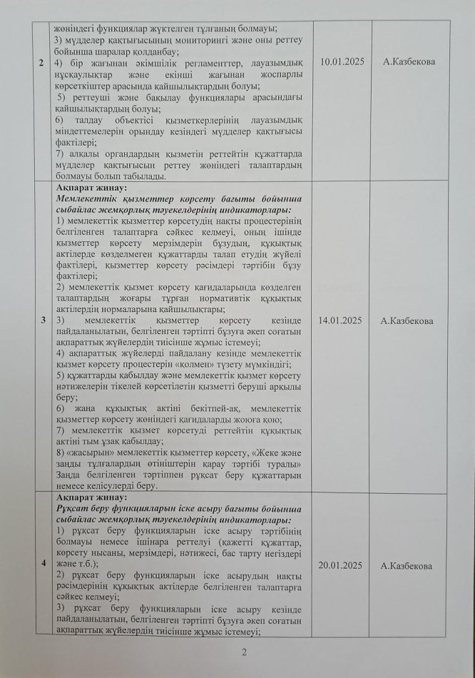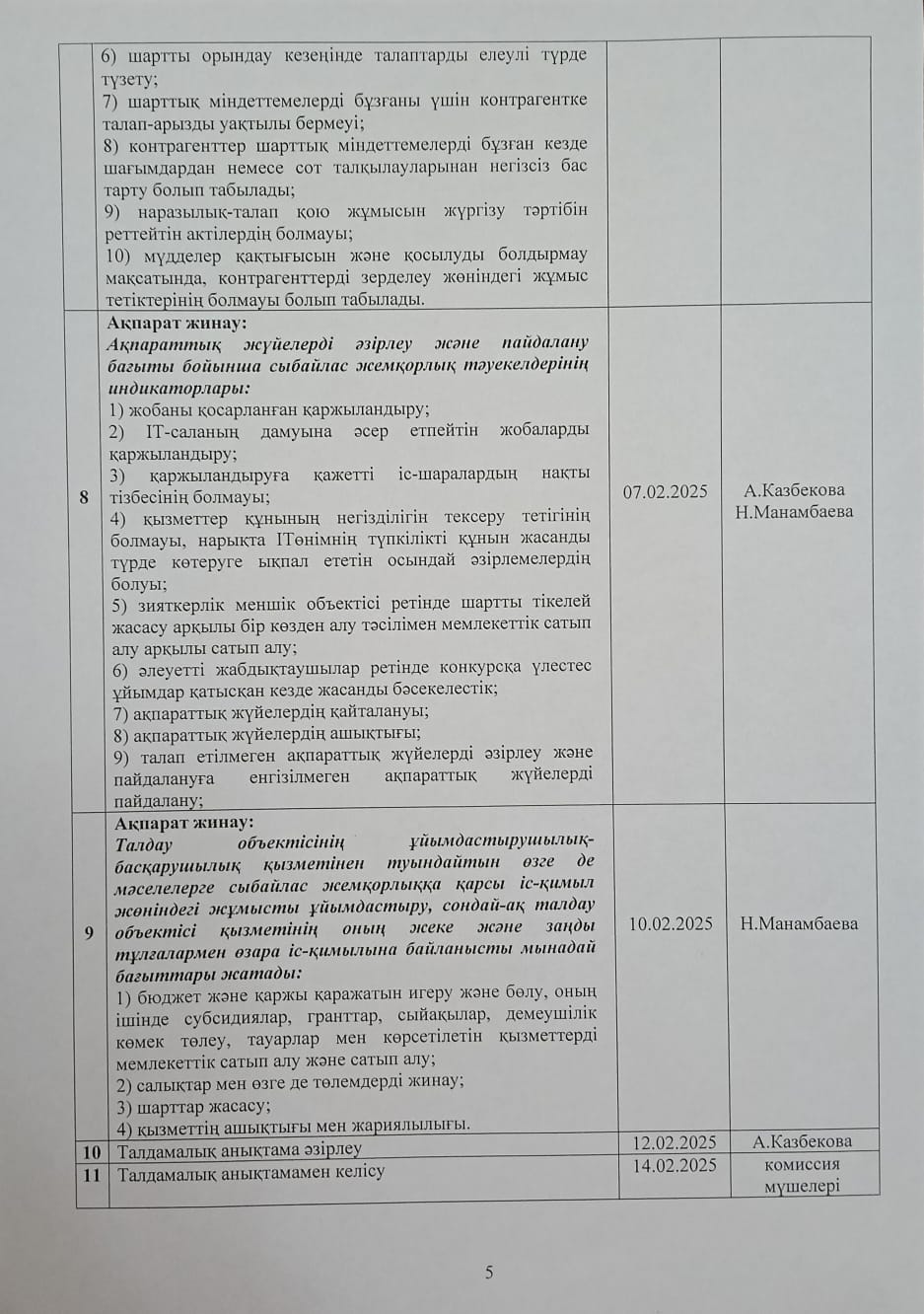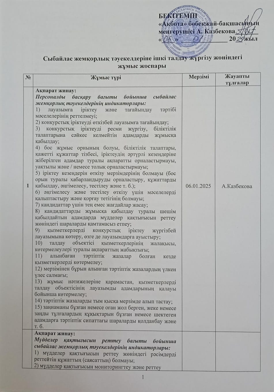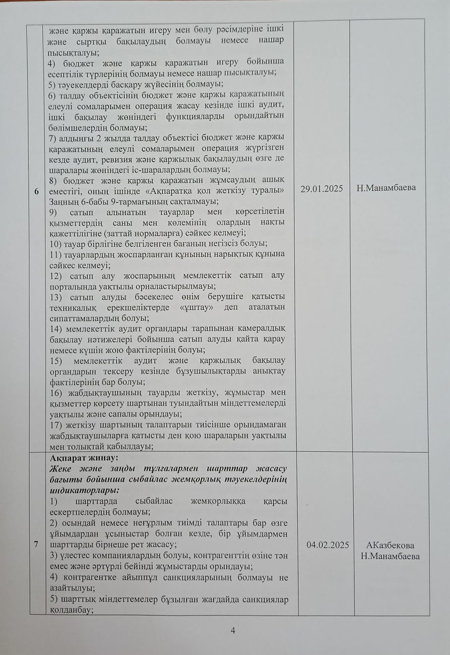 06 январь 2025 0 1 2 3 4 5 Сыбайлас жемқорлық тәуекелдеріне ішкі талдау жүргізу жөніндегі жұмыс жоспары